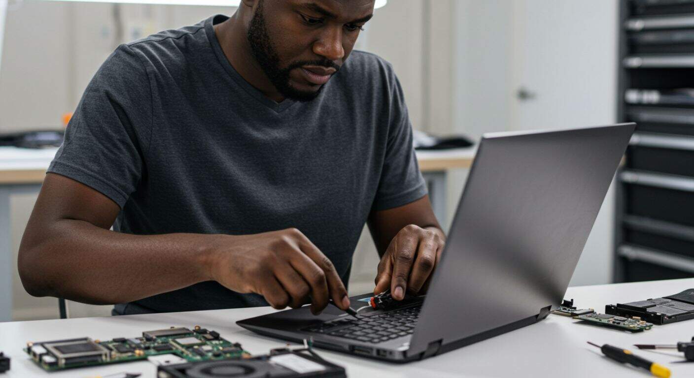 Troubleshooting common laptop issues: screens, keyboards, batteries.